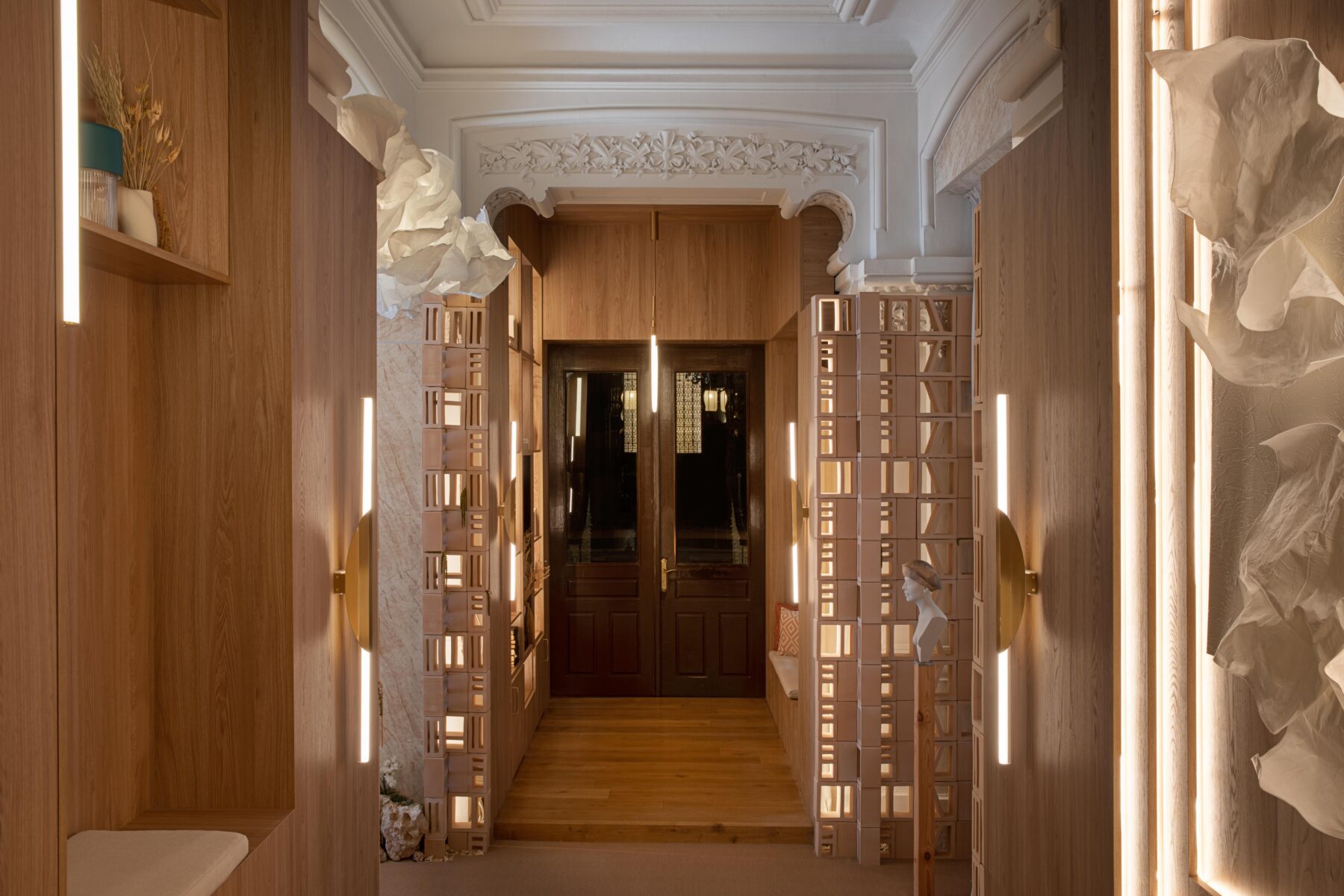 2020年2月,马德里艺术与设计月,HotELLE 酒店装饰项目展示了顶尖室内设计师对当代酒店的愿景。由 Lázaro Rosa-Violán 设计的 125 平方米酒店套房,包含客厅、厨房餐厅、工作区及睡眠区,展现了精致而永恒的设计风格。