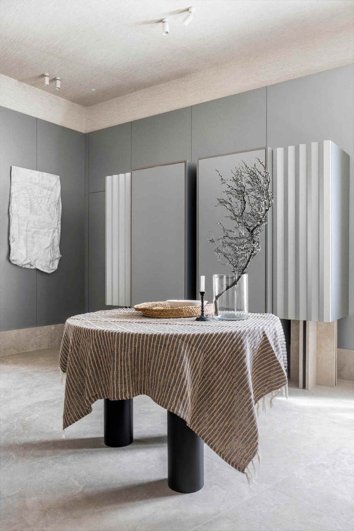 空间中的家具以 爱维克 ALVIC 材质面板打造,将门板与内饰相结合;而烤箱区域更被设计成一座“图腾雕塑”,完全由 ALVIC 材料构建,象征着科技与设计的共生与突破。