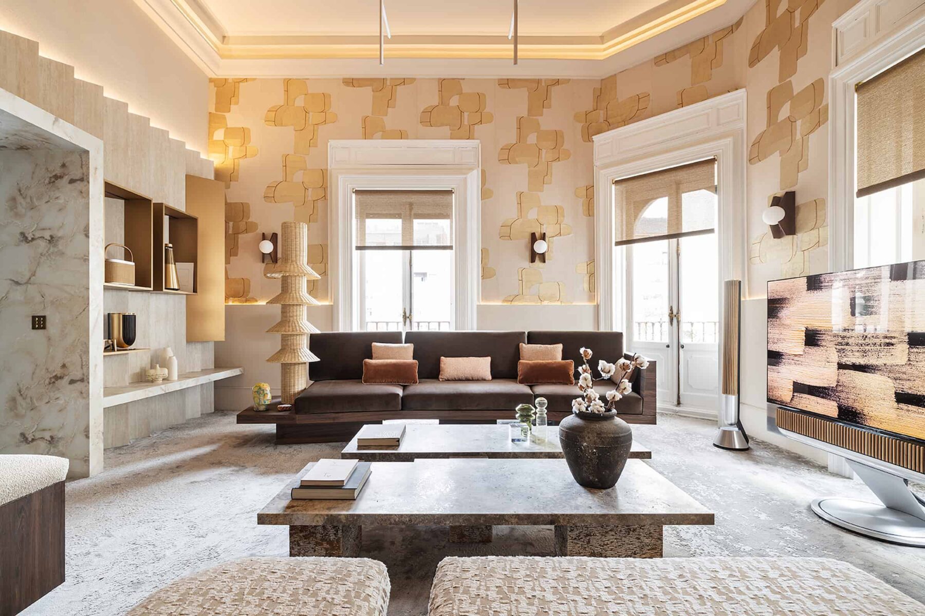 2020年2月,马德里艺术与设计月,HotELLE 酒店装饰项目展示了顶尖室内设计师对当代酒店的愿景。由 Lázaro Rosa-Violán 设计的 125 平方米酒店套房,包含客厅、厨房餐厅、工作区及睡眠区,展现了精致而永恒的设计风格。