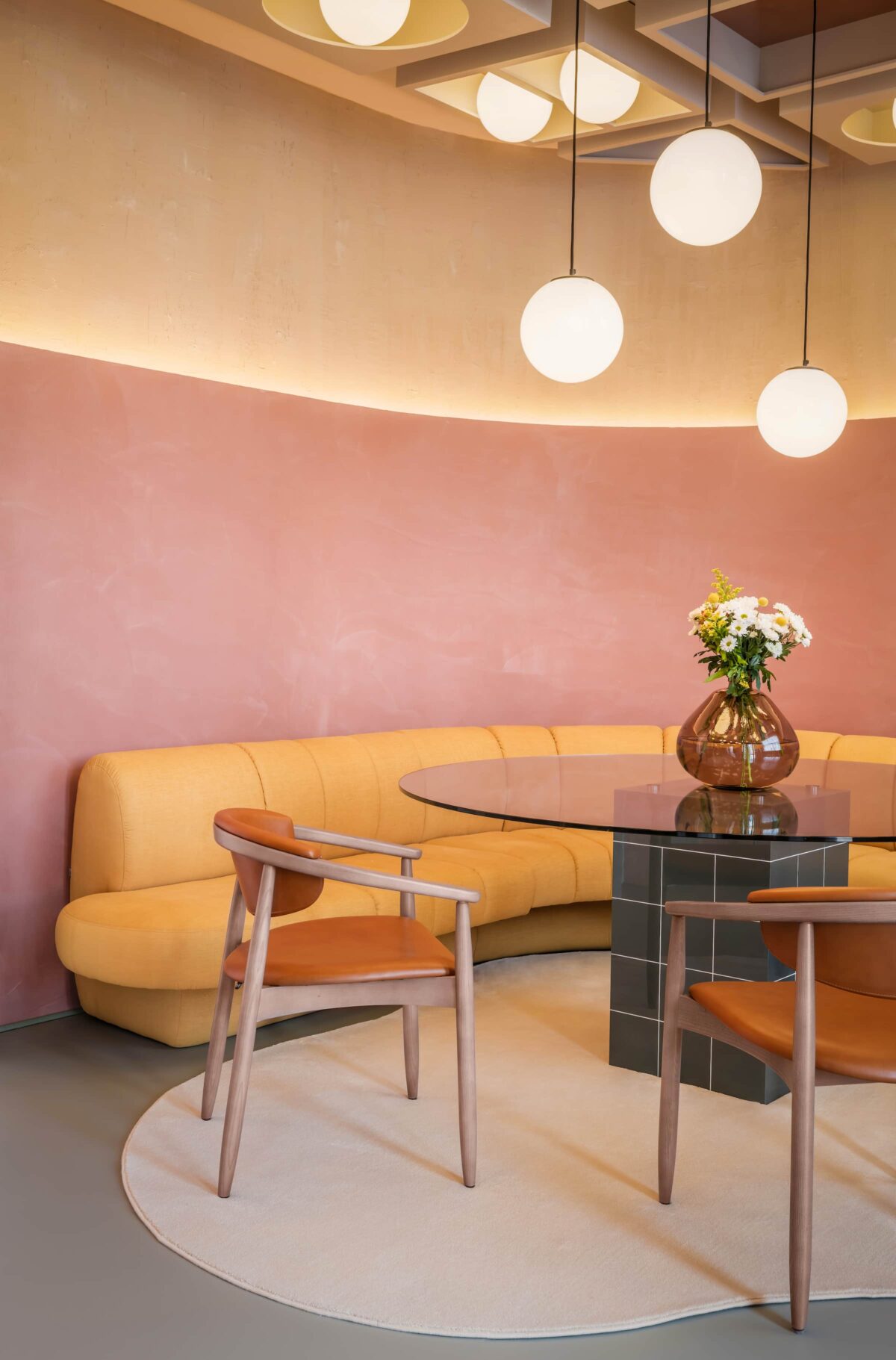 此外,空间通过 ZENIT 龙舌兰绿、LUXE 莫兰迪红、鼠尾草绿与 SYNCRON 洞石 01 的组合,营造出精致而和谐的氛围,展现了质感、色彩与优雅的多重层次。