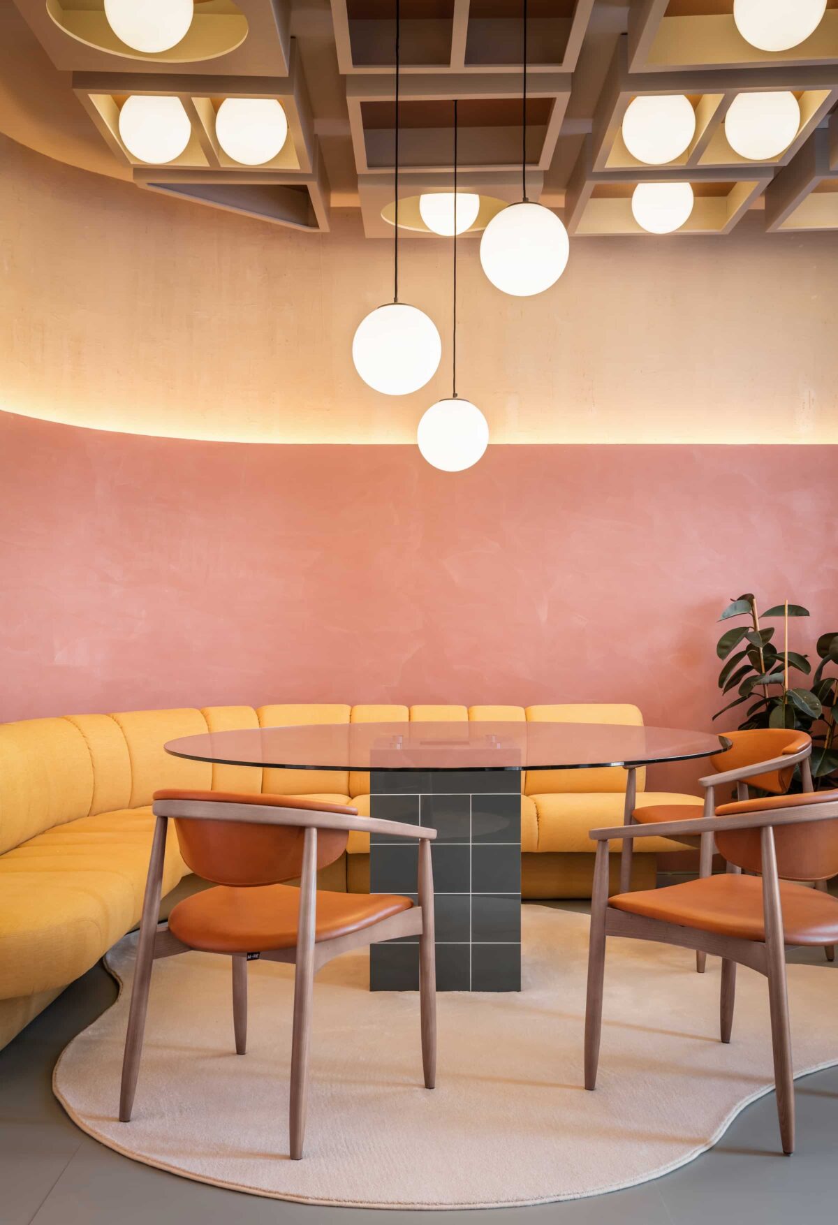 由 Conn Studio、Nagar Group 与 Hüest 共同设计的 “共聚空间” ,将 希腊神庙的灵感与中世纪现代主义美学 融合,简洁的线条与几何形态唤起古典建筑的庄严感。为重现标志性的柱体,设计采用了 SYNCRON 洞石 01,真实还原了洞石的质感,唤起古希腊、古罗马建筑的材质记忆。